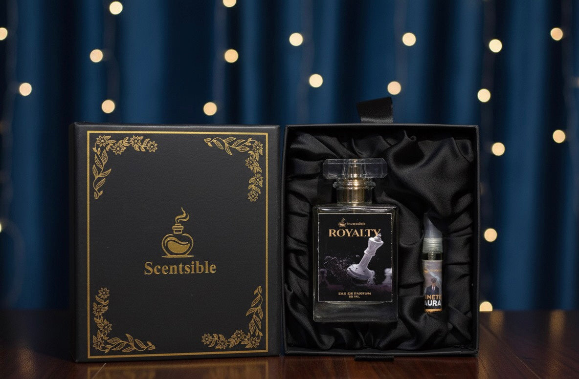 Royalty by Scentsible – Step into sophistication with a fragrance crafted for those who command respect and admiration. Opening with a vibrant citrus freshness, it instantly captures attention. The heart reveals a rich amber warmth, adding depth and allure, while the musky undertones create a lasting trail of elegance and power.